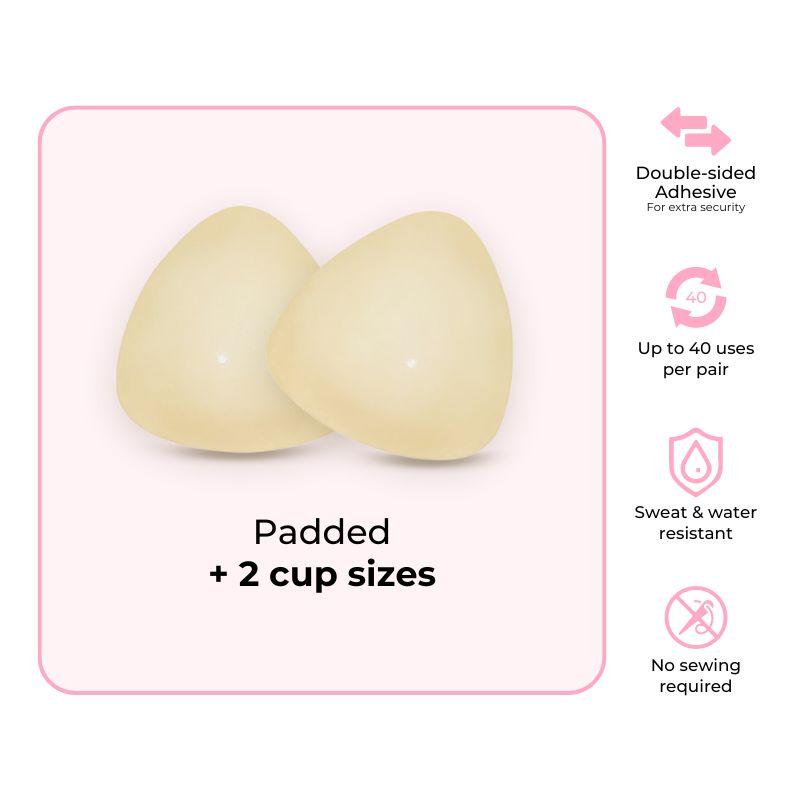 You can experience a lift of up to 2 cup sizes instantly, depending on your natural shape. The inserts are designed to enhance cleavage, provide support, and give a perkier look without wires or surgery.